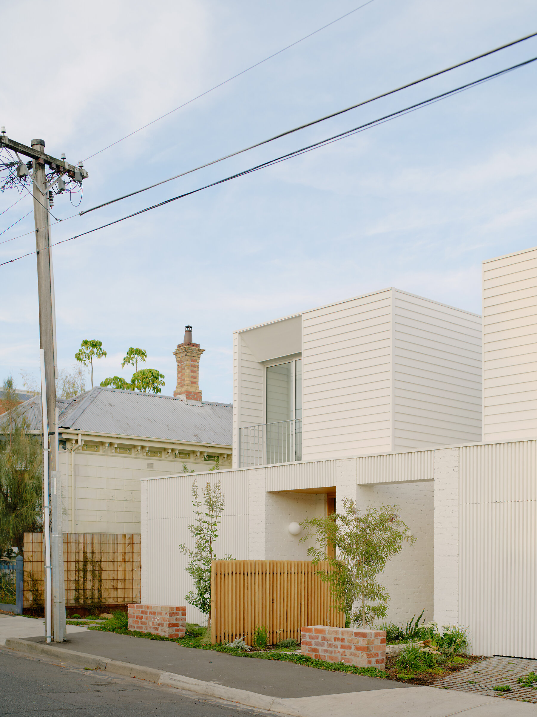 Nestled among traditional Victorian terraces, The Northcote Townhouses adopt a language of quiet humility, offering a sympathetic response to place. The homes’ painted brick lower levels and weatherboard-clad upper levels offer a restrained, unassuming presence, while ensuring the design integrates seamlessly with the rhythm and proportion of the street. These tactile materials offer a contemporary interpretation of the surrounding fabric, with red brick plinths and porous driveways generously giving back to the public realm.