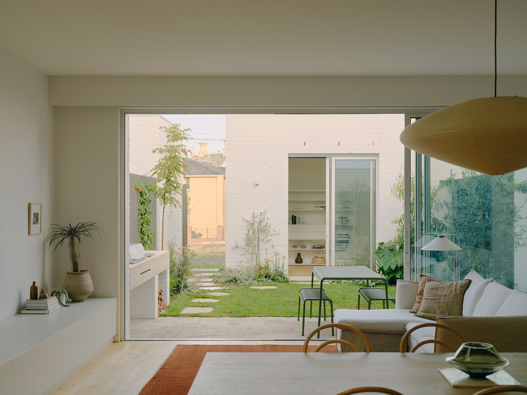 Three couples—neighbours, friends, and industry peers—formed a consortium to redevelop the site into family homes that thoughtfully balance light, privacy, and connection. Their collaboration made inner-suburban development both viable and enriching, with each member contributing their unique expertise. Studio Esteta Director Sarah Cosentino and her husband Stephen McGarry, Director of Carr joined forces with Sarah Birthisel, Director of Birthisel Wittingslow Architects and her husband, as well as retail design executive Tanya Smith and partner Neil Clarke, owner of 3core Electrical—collectively bringing a wealth of architectural, design, and trade knowledge to realise the site’s full potential.