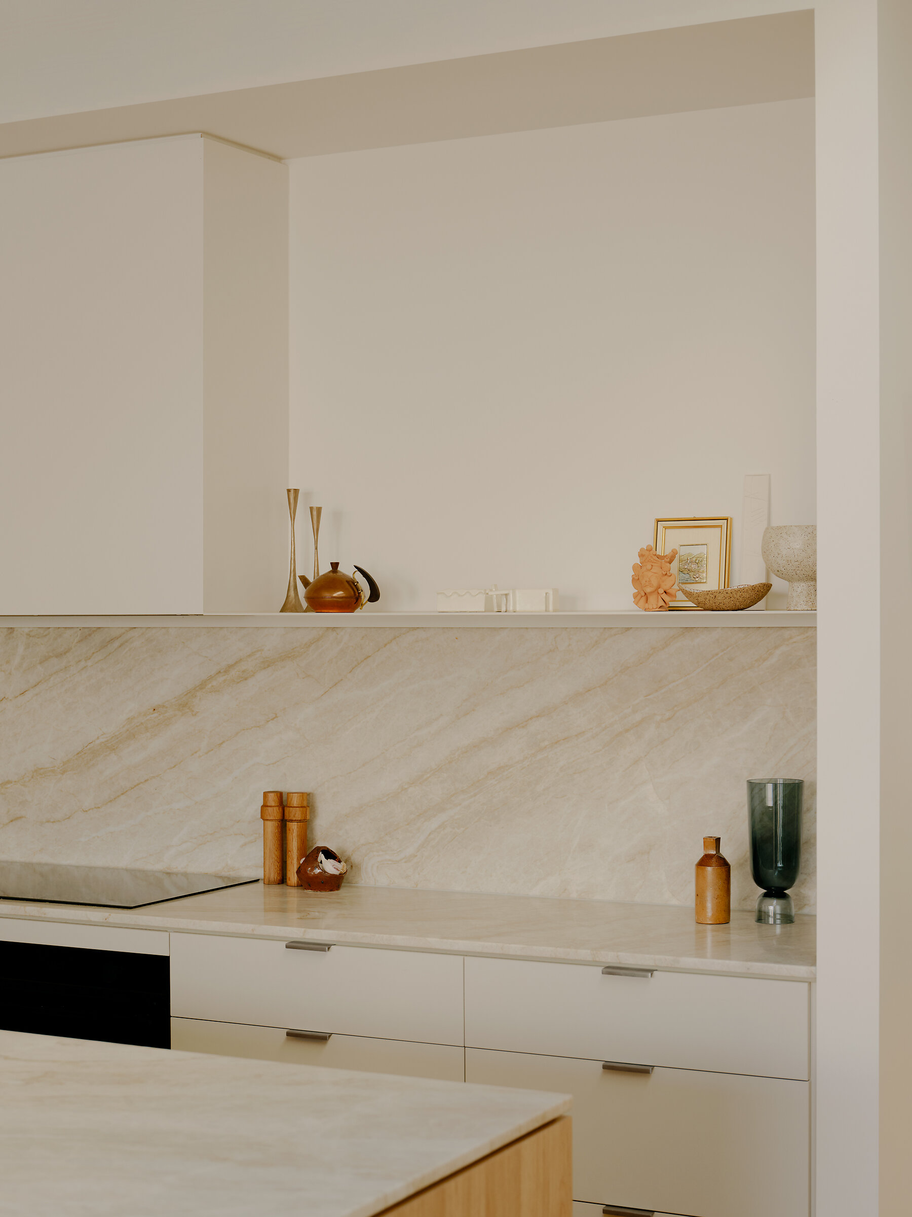 Despite working with a modest budget, interior detailing was carefully considered to enrich daily life. Bespoke timber handles bring character to utilitarian cabinetry, a display ledge in the kitchen invites personal expression, and refined touches—like quality tapware and door hardware— enhance the user experience.